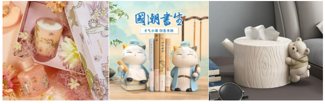 随着人们对精致居家生活的追求,“悦己”、“颜值”成为居家消费关键词,可提供情绪价值的香薰、摆件等氛围感好物受到消费者欢迎。比如,野兽派野桃木槿花香薰蜡烛糅合果香、花香、木质香三种香调,层次多元丰富,让你居家也能享受到置身野桃林般的自然芬芳中,舒缓心境;憨态可掬的如果国子监小猫装饰品,既可以放在书房中做书挡,又可以当做家装摆件,可爱萌宠造型让人看到就心生愉悦;棕榈树创意熊纸巾盒摆件,清新雅致的奶油风符合当下审美趋势,无论放置在客厅还是卧室都很百搭。